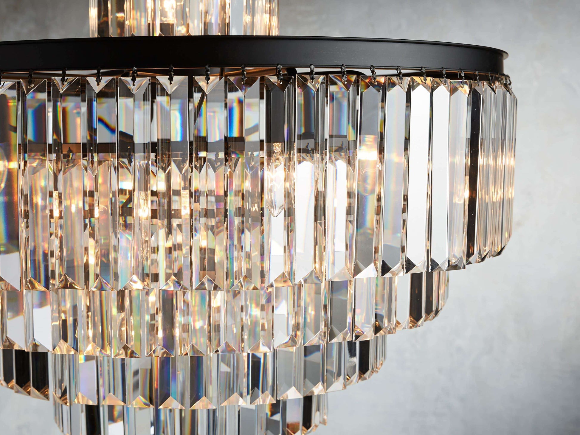- Crafted from multifaceted K9 glass crystals with an iron frame and oil-rubbed finish.