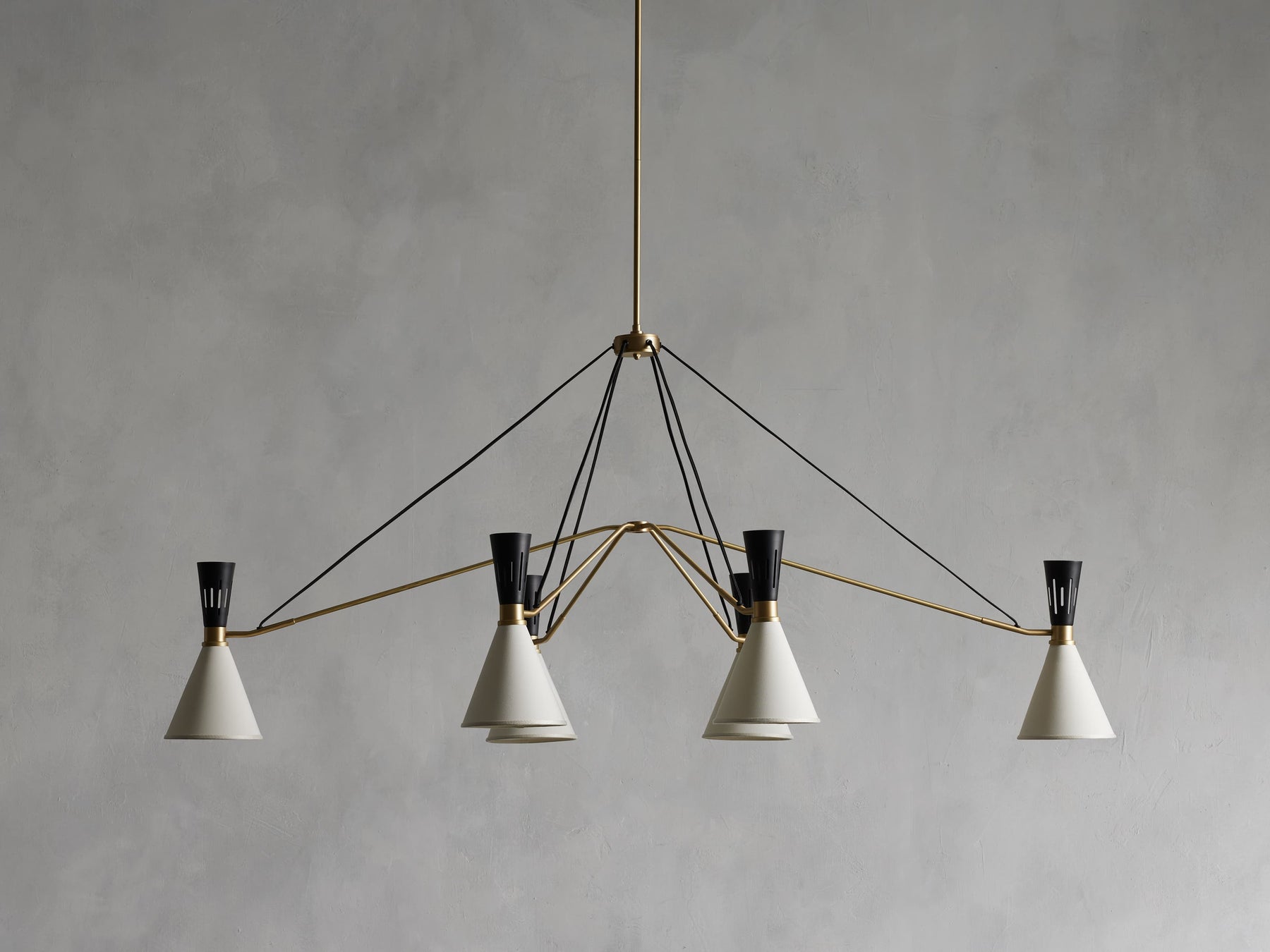 Inspired by an antique found in a Parisian flea market, our Ramsey Lighting Collection boasts a mid-century Italian sculptural silhouette. Hand-crafted by artisans in northern Italy, Ramsey features exposed, black-fabric cord supporting a beautiful brass frame. The fabric shades add the perfect contrast in texture emitting a soft, warm glow.
